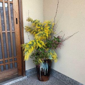 今日は春を通り越して初夏を思わせるような暖かさでしたね。 友達の家に咲くミモザが 今ホフホフしているから よかったらと言われ ミモザを分けてもらいました。 帰って早速我が家の玄関に 生けてみました。 綺麗に咲いていて 黄色のミモザをみると 元気がもらえますね✨