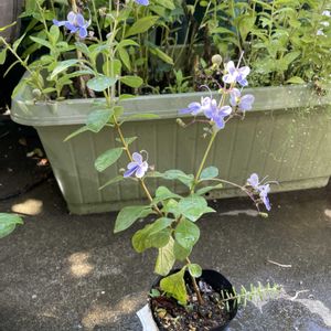 去年挿し木したブルーウィング🩵 小さいけどお花🦋が咲いてくれました😊 お花が咲き終わったら剪定したいと思います。 定植しなくてはいけないのですが、これからお嫁にだそうかと思っているので、このままポットで🪴過ごしてね❗️