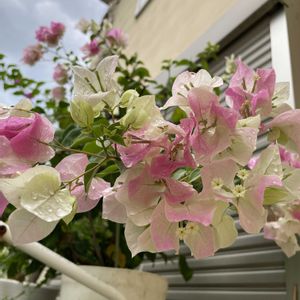 久しぶりのまとまった☔️雨🥹 水やり💦をしないとなんて楽なんでしょう😃🙌 ①ブーゲンビレア ブライダルベールらしい色合いに🩷🤍 ②種まきからのホワイトスター初めての開花
