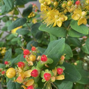 今日のお花 ヒペリカム 5月14日撮影 🔴🌼同時に見られて可愛い😍 実をこのまま置くと🔴→⚫️ 種が溢れて増えてしまいので✂️ それでも毎年どこかに🌱