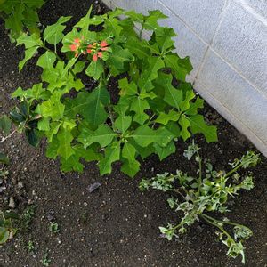 猩猩草(ショウジョウソウ) ここ何年かは朝顔や風船葛と共に種から育てている我が家の夏の定番品👍 …って言いたいが、実は種を蒔いたのはいいが、ひとつも発芽せず💦 なんで⁉️😭 これは去年のこぼれ種がコンクリートの隙間から生えてきた、言わばど根性もの😅 抜くに抜けず、そのまま生やしてます😁 取りあえず来年に繋ぐ種は取れそうでやれやれってとこですな😌