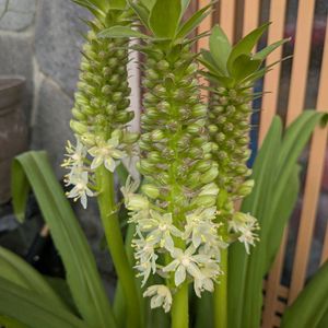 こんばんは〜 家の庭の花 1.2...パイナップルリリ ー(ユーコミス) お花が咲き始めまし た〜✨ 3…猩猩草 ショウジョウソウ 中心が赤くなってき ました!❣️