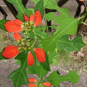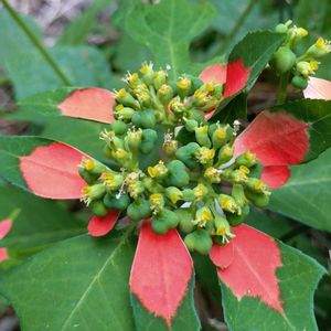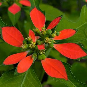 朝一番にポチッと! サマーポインセチアとも 🔴と🟢の葉のコントラストが鮮やか