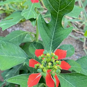 猩猩草(ショウジョウソウ) こちらも満開ですな! ローゼルの隣りなので目立たないけど…😅 ひと頃に比べると、朝晩はだいぶ過ごしやすくなりましたね。 もうこれ以上、1年草以外枯死する植物は無いでしょう。 いくつかお亡くなりになったけど、毎年夏をどう越すかが問題ですね🤔