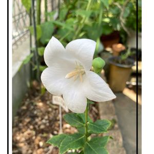 裏庭に涼しげに咲いた 白い桔梗の花 今年は数が少なくて 来年には咲かないかも 株増やすにはどうすれば? どなたか教えてください ②⑤は紫の桔梗 ⑤は四枚花びらの桔梗 ③④ブルーデージ🩵 去年に植えて 爽やかな花色の🩵 一株だけ今年もお花 一輪ずつ咲かせてます