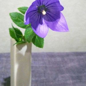 今日のお花 桔梗 最初の右の花は六枚の花びら 二枚目、三枚目 新しく出てきた芽から 四枚の花びらの桔梗 へデラ🌿 桜🌸吹雪 青い鳥🐦
