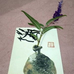 🏷️今日のお花 🏷️白い水曜日 🏷️シックな水曜日 🏷️素敵な水曜日 アメジストセージ 片岡鶴太郎画伯の絵の壺に お花生けてみました イヌタデ 我が家のあちこちに咲いています