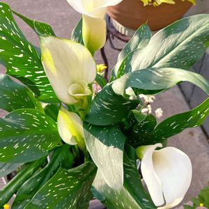 斑入りカラー😆出会いました♪ フクロウ祭り参加させて頂きま〜す🫡🦉𓅓 ②・③まだまだ咲いてます😘鉢植えの花💞 🏷️2のつく日は斑入りの日 🏷️斑入り見つけ隊♪No.19 🏷️幸せを呼ぶフクロウ祭り 🏷️フクロウ祭り 🏷️白い水曜日♡