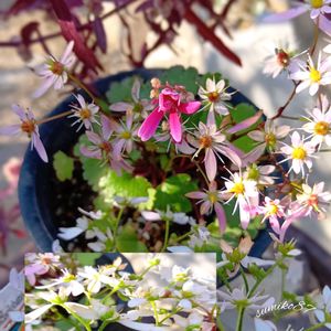 ①斑入り葉が実を付けてます📣🎶 ②クシャクシャ😚した薄ピンク ・アキランサスのかわり葉(*゚∀゚) ③キク科/エゾギク科❦アスター《ビクトリア》完全八重咲き と フジバカマ🤍白花✨ 🏷️2のつく日は斑入りの日 🏷️斑入り見つけ隊♪No.19 🏷️コラージュ仲間達