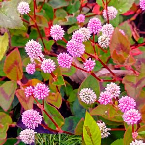 🩷モモイロの花❀💞❇️ ① ②施設の植栽より〰✿ ・ヒメツルソバ 数字の8に見えて‥🤭 ・ピンクの花❇️と種子⚫️❇️ ③「ルクリア」という植物なんですね♪ 甘〰ぃ香り でギフト🎁💐🙆🎶 ④盆栽展で出会いました~(^^♪