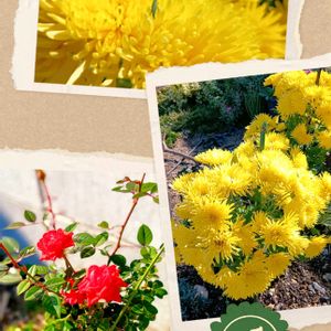 ご近所さんのお庭✨ 🟡菊の花がまん丸に見えたので 伺ったら なぁ~にもして無いよ🤷🏻♀️って事でした 日当たりの良い場所⭕️ 後 🗨️🌻ヒマワリ植えたけど 野良😼の被害で 枯れてしまったらしぃ‥😞🤔 何時も 何か咲いていて 楽しい小道です😙🤭✌️ 👀あっ💡‼️ 🟡キクの花に 小さな🦗さん♡🤫✨ 💜アメジストセージ😍花数少ないけど かなりの株でした~♪ 🌹ミニ🌹さん 可愛くていてました❤(ӦvӦ。)✴️ 🏷️月曜ローズショー 🏷️斑入り見つけ隊♪No.19 🏷️コラージュ仲間達