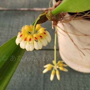æ°ãã€ãããå²ããŠãã â ã€ã³ããã¯ã¹ â¡ãã«ããã£ã©ã ãã㌠'Spots' (Spot) ãBulbophyllum lobbii Lindley (1847) åäœåïŒ'Spots' ïŒæã«ç¶ããŸãå²ãããïŒæã«åºãè±èœã¯éäžã§ã·ã±ãããã£ã±ãè±èœã«äžãããžã£ããžã£ãæ°Žãããããã¡ãªã®ããªïœãšæã£ãŠãããïŒæã«å ¥ã£ãŠèŸãç«ã¡äžãã£ãŠãã®ã«æ°ãã€ãããã³ïŒæ°æž©ãååã«é«ãã£ããäžããæ°ŽãããŠã倧äžå€«ãªã®ãïŒãšæã£ãŠè©Šãã«ãã®ãŸãŸæ¯æ¥é ããæ°ŽãããŠã¿ããã©ç¡äºå²ãããçµå±ããããããšãªã®ïŒ â¢ïŒæã«å²ãããã£ã·ãŒãºãŽãŒã«ãããŸã æ®ã£ãŠãã®ã§äžŠã¹ãŠã¿ãã⬠ïžã'Spots'ãâ¡ïžã'ãã£ã·ãŒãºãŽãŒã«ã'ãåããããŒãªã®ã«ã ãã¶è±ã®åœ¢ã倧ãããéããã â£ãã«ããã£ã©ã ãžã¢ ã㌠ãŽãŒã«ãã³ã¢ã³ãã¬ã© ã Bulbophyllum Jia Ho Golden Umbrella, Jia-Ho Orch. Nurs. 2013幎ç»é² ããããŸãå²ãããä»ã·ãŒãºã³ïŒã€ãããªãã ãã©ãå é±ã®æšææ¥ã«éè±ããŠæ¥ææ¥ã«ã¯ããè²è€ªããŠåçã®ç¶æ ãææã®æã«ã¯æ£ã£ãŠããå€ã¯ãã³ãã«æ£ãã®ãæ©ãã â€ãŽã¡ã³ã³ã¢ ãªãã« ãšã³ãžã§ã« ãGomenkoa Little Angel, Takaki O.N. 1988幎ç»é² ïŒæã«å²ãããããã°ããå²ããªãã ãããšæã£ãŠããã ãã©ãæ°ãã€ãããè±èœãäžãã£ãŠãããããã¢ãã ã€ã¯ãã¬ã¿ããã«äžå®æå²ãããããå²ãææãæ¯åéãã