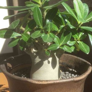 アデニウム(の何か ¥300均一のお店でこれとセダムと万宝の寄せ植えになっていたものを購入してきて、1人にして育てていますが今年の夏に急に塊根がぽってりしてきました(〃ω〃)これ良い感じじゃないですかねー♪