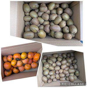 柿 ゴールドキウイの一部収穫しました🙂 届かない所多くて採れませんでした😔 2 3p イソギクが種落ちて地面(ブロックの間)から生えてきました😊