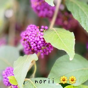 おはようございます。 とっても爽やかな朝です、思わず深呼吸❣️ ご近所さんのお庭で撮らせてもらった コムラサキかな⁈ ムラサキシキブかな⁈ 秋色を見つけました。
