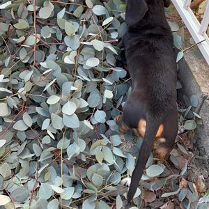 ユーカリポポラスが🌳巨大化してきたので🤣旦那サンと思い切って半分くらい伐採をしました🪚✂️ 葉っぱ🌱の絨毯になってキレイだったので🐕🦺歩かせました🐾 2️⃣3️⃣ご近所さんの植え込みのジニア🧡💛がすごい群生してます😍 🏷️ワンワン祭りします🐶