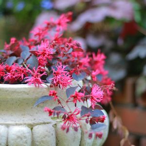 トキワマンサク・ルビーランナー 紫色の葉っぱに紅色の花が映えます💕