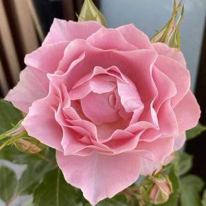 午後の玄関先より ꕤ バラ ウンディーネ ꕤ 今年お迎えした新苗です🪴 1輪だけ咲かせてみました💓 良い香り〜♪♪