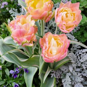 こんばんは〜☁️ 暖かさにパンジーもモリモリしてきました🙌ローブ・ドゥ・アントワネットの色合いが面白いです👀息子が選んでくれました〜 紫のパンジーは、絵になるスミレです♡種まきのカレンデュラも毎日かわいい姿を見せてくれます♡ ②📷手のひらサイズのチューリップ🌷かわいいです♡ ③📷息子が学校で育てた水仙!淡いクリーム色が素敵〜 ④昨年挿し木をしたピンクアナベルの新芽が出てきてくれて、テンションが上がります☝️ 庭の草花に触れると、癒しパワー倍増です!