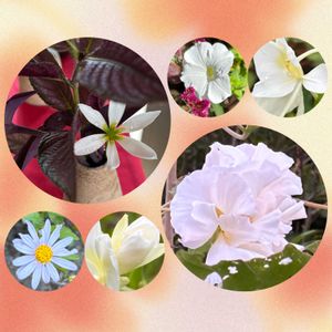 我が家の淡い色のお花、、玉すだれ、ペチュニア、ジンジャ、ノギク、八重の酔芙蓉(シラフの時、、笑)