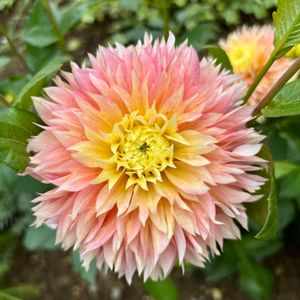 昨年の秋に閉園してしまった恵庭えこりん村銀河庭園さんのダリアの球根を我が家のお庭に植えたら… 見事に咲きました〜💛🧡🩷 pic2…咲き始めは淡い黄色でした! 咲き進むにつれてオレンジピンク色に〜✨