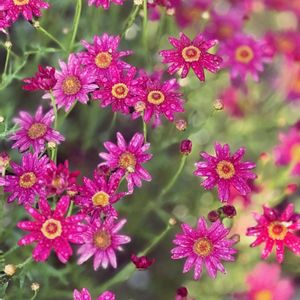 ①花期がながい マーガレット 和名 木春菊(モクシュンギク) 花言葉「恋占い」「信頼」 ②独特の香りと風味の シュンギク 花言葉「楽しむ心」 ③ナデシコ、ビオラの前で ポーズをとるワンちゃん おはようございます 今日も良い一日をお過ごしください