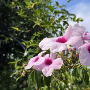 こんばんは🌆 パンドレアがなんとか撮れる所に咲いています🤭🎶 常緑で葉は常にあるので忘れています😅 離れてみると良く見えて綺麗です(^O^☆♪💕