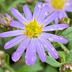 おはようございます😊 シオン キク科 にわか雨の後の庭で、咲き乱れるお花に水滴が可愛いです💕😍 今日の投稿は小さい庭の菊まつりです╰(*´︶`*)╯♡ 今日も元気に穏やかな一日をお過ごしくださいね💖🤗 ジュリアーノ さん発信 🏷️水曜日は水色 🏷️彩月(いろどりづき)の青い花2025 🏷️水滴の水曜日