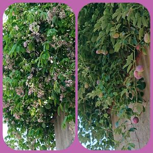 散歩道のお花 今日のお花ムベ ムベのお花がいっぱい咲いて綺麗でした ムベの実がぷっくりして可愛い可愛いかったです 🏷️今日のお花 🏷️木の実草の実野菜の実の に参加します🎵