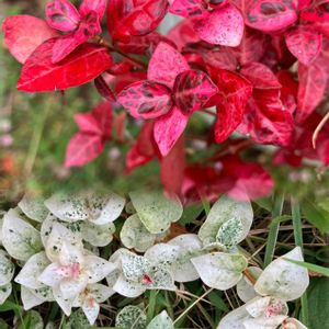 こんにちは♪ 降りそうで降らない暖かい一日です ①②③今朝の庭 ①紅葉したハツユキカズラと ハツユキみたいなハツユキカズラ ②紫色の花 アメジストセージ💜 ③ローズマリー2タイプ ブルーサルビア💙 ④⑤散歩道で ナンキンハゼ ④白い実 ⑤紅葉❤️ 🏷️木曜日は木 🏷️木曜日は木の実 🏷️癒しの紫♡ 🏷️深まる秋 参加します