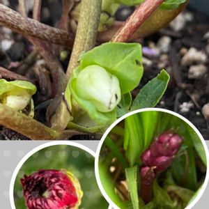 おはようございます😊 今日の家の蕾たち💕 クリスマスローズ《マリア》に蕾‼️ 漸く植え替えやらお手入れの終わった30🪴の仲間達🥀🥀🥀 まだ新芽が出ない子たちが多いのにこの子は毎年早く咲くのですが…早すぎますね🫢 吉祥草とさし芽の菊も蕾が出てきました🙌 2枚目山野草コーナーにたくさんのおみこしが出ています🪅 ゲンノショウコも家にないと気が付かない(みこしぐさ)でした😅 🏷️金曜日の蕾たち 🏷️山野草大好き 🏷️山野草マニア
