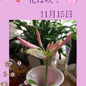 💕家に🏠入れてみた 💕 ネリネ(ダイヤモンドリリー) と タカベル さんに 教えていただきましたm(_ _)m あまり寒いので*🥶💨* 私と同じ🤣 風邪を引いては😷いけないと 部屋へ入れてみました😊 咲いてくれますか🌸🍀 今日も一日 アムとお留守番 パパもママもお仕事 お外へ行きたがるのですが😭 私もアムも🤣風邪を ぶり返して 鼻水🤧( ´ii`。) ジョロ ジョロ nanoで 庭のモミジを🍁取ってきて アムはのりで張りつけ 私は水差しに飾って見ました👀😊