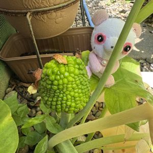 パンダの日🐼 つぶつぶの日🏷️参加しまーす😊 ①ムサシアブミの実 ②センリョウの実 ③白式部の実 ④つぶつぶたちに鉢を乗っ取られそうなイポメア・プラテンセ やっと芽を出しました🌱 ⑤サルスベリの蕾