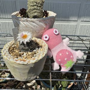 ①花笠丸🌵 一気に6つも咲いた〜🌵🌼 ②花笠丸可愛いぞ〜🐘 久々登場🧦🐘とガソスタでもらったマイメロうちわ ガソスタとサンリオコラボのくじ引き楽しみにしてたのに参加できるのは20リットル給油から うちの車は小さいので入ったのは19.6リットル💦残念すぎるー😢 ってことで残念ながらアプリ会員全員プレゼントのうちわだけもらってきました😅