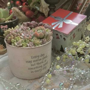 おはようございます 🏷𓈒𓏸︎︎︎︎毎月8日は鉢の日 🏷️ クリスマス月間 モンズソルトさんのXmasリメ鉢 多肉ちゃんはハニプラの桃薫の女王 ピンクパンサーさんの⛄️ そして可愛い🐝キュピちゃん💕 いちごみるくちゃんの ピッピ⛄️と🤶💕 可愛いもの尽くしで ⸜(*˙꒳˙*)⸝💕参加します 2枚目 🏷️ ネックレスの日 ❁¨̮参加します グリネ ルビネ ドルフィン エンジェルティアーズ アーモンド specialゲスト 子持ち蓮華のシャンデリア♡ 碧魚連のタラリン♡ ( * ॑꒳ ॑*) ネックレスたちに追いつこうと必死🤣 またマイメロ🐰💦 日にち間違えてたわ ✩˚。⋆˙˚ 明日新作キュピちゃん登場でーす 今日も1日頑張ろう(๑•̀ㅂ•́)و✧ね✿