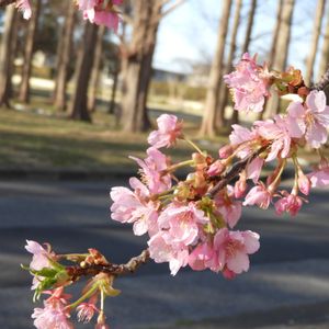 今朝の散歩道です。 水元公園の河津桜🌸です。