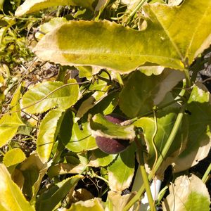 伊豆半島某所 温暖な地域なのでこの時期でもパッションフルーツが成っています 流石に暖かい時期より食味が落ちるとのことですが、ほぼ一年中成るのはすごいの一言です