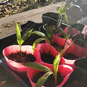 9月下旬にポット移植してから1ヶ月弱です。しっかりとした芽が出てきました🌱 発芽もかなり早く、初心者でも割合簡単に苗作りができる部類のヤシだと思います。