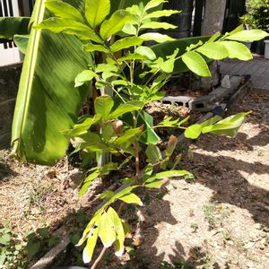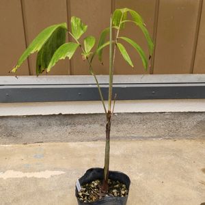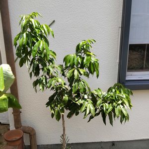 龍眼の木(実生株)です。 昨年購入した小苗ですが植え替えて順調に成長しています。 ライチと同じ場所で同じ様に管理をしましたが、枝先の枯れもなく成長したので耐寒性はライチ以上の可能性があります。