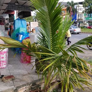 タイのサムットソンクラーム県で撮影した一枚 ココヤシがこの小さな鉢でここまで大きくなってます 熱帯の環境がいかにヤシに適しているかというのがわかりますね
