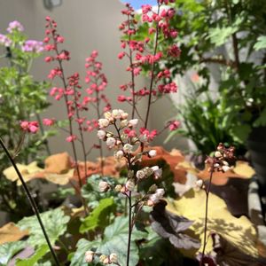 〜今日の庭〜 *ヒューケラ* ①②③④ 庭のあちこちで 花を咲かせてる 葉が美しいが 花も可愛い❤️🩷🧡🤍 (小さな花が上手く撮れません😅) ⑤ 昨日、庭の樹木の剪定がありました モミの木🌲の美しい新芽が…✂️ 12月なら…クリスマスリースを作りたい🥲