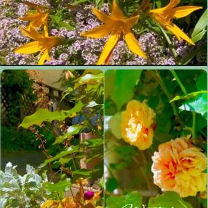 ビタミンカラー💛 ニッコウキスゲ・バラ・ヒューケラのお花も咲きました♪シロタエキクはまた冬を超えてくれました♪キラキラ光って綺麗〜癒されて元気パワーget♡