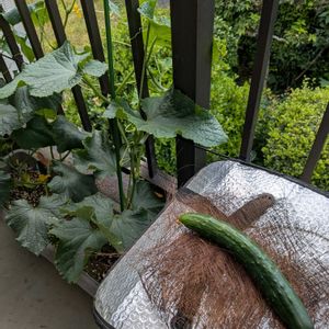 お早う御座います〜☀ 蒸し暑さの季節になりました〜😅 二階テラスのプランター栽培キュウリは2本目収穫!! 昨日初収穫キュウリでした… 美味しくて最高‼️👏🥰🎶 今朝のベルちゃんローズ🩷です✨ ニオイバンマツリと小花のエルゲロンのコラボです ヒューケラの花が満開に〜🈵✌️🥰🎶 寄せ植え達が皆さんをお出迎えで〜〜〜す🙋💞🎶🎉