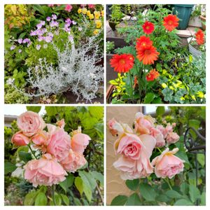 1️⃣バーガンディアイスバーグが 咲きました🌹 2️⃣ ↖️クチベニシラン↗️ヒペリカム ↙️ヒューケラ↘️ニーレンベルギア初めて咲きました💙