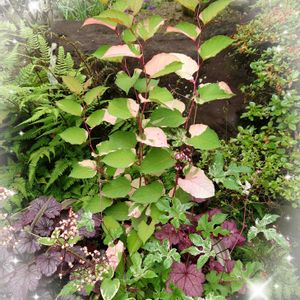 寄植えに使って メインがなくなって 残ったグリーン達が モリモリ😅 ① 庭石の前にプランター置いた ② 野葡萄 ほぼ茶色い枝だけ…から どんどんツルがのびて美しい葉が💓 ③ ヒューケラ ジョージアプラム 葉も綺麗 花も可愛い🎵 ④ 斑入りイタドリ 葉は綺麗だけど この後どうしよう… 放置したら大きくなりそう😱