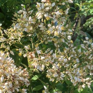 おはようございます😄 私の庭の花たち💐 ①ナンテンの花 たくさん咲いてきました😄 ②グリーンカーテン 今年もゴーヤで作りましたが,また,隙間だらけで網越しに見える花たち😉(ペチュニア、ダリア,マリーゴールド、ゴーヤの雄花) ③コラージュ ヒューケラの花,アカンサス、アガパンサス、ウメの実(昨日,取りました) ④ヒルザキツキミソウと イモカタバミ ⑤ヒマワリ🌻モドキ属キク科 ヘリオプシス(AIにより) 名前,合ってるかわかりません😅 🏷️ビューティフルサンデー 🏷️日曜日は日本を感じる和の花 🏷️心にメローイエロー 参加します。